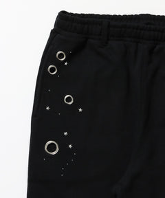 sqnz rhinestone & eyelet sweat pants / ラインストーン スウェットパンツ 裏毛 ハトメ ポケット 【セットアップ着用可能】 ブラック