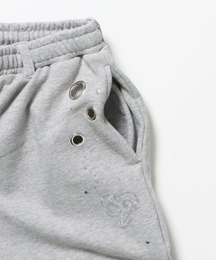 sqnz rhinestone & eyelet sweat pants / ラインストーン スウェットパンツ 裏毛 ハトメ ポケット 【セットアップ着用可能】 グレー