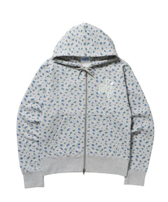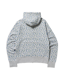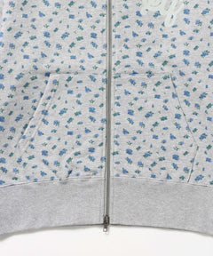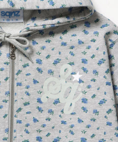 - sqnz logo pt zip p/k /ジップパーカー フーディ 裏毛 ワンポイント ダブルジップ 花柄 星柄 柄83