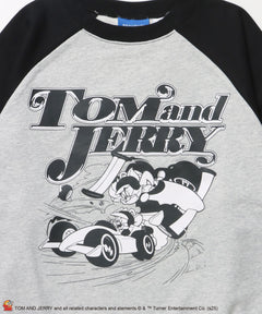 トムとジェリーが駆け抜ける可愛いデザインのラグランスウェット