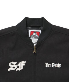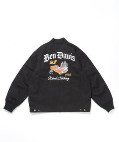 - MECHANIC EMB RIBBED JACKET / ワーク ジャケット 刺繍 ジャケット ダック アウター ブラック