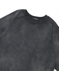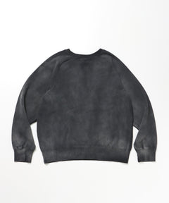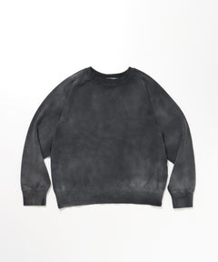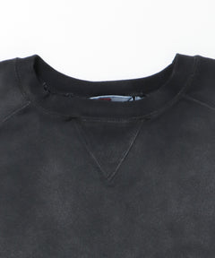 - 70'S FIT F-SLEEVE CREW / 加工 裏起毛 クルーネック スウェット ラグラン 短丈 裏毛 ブラック