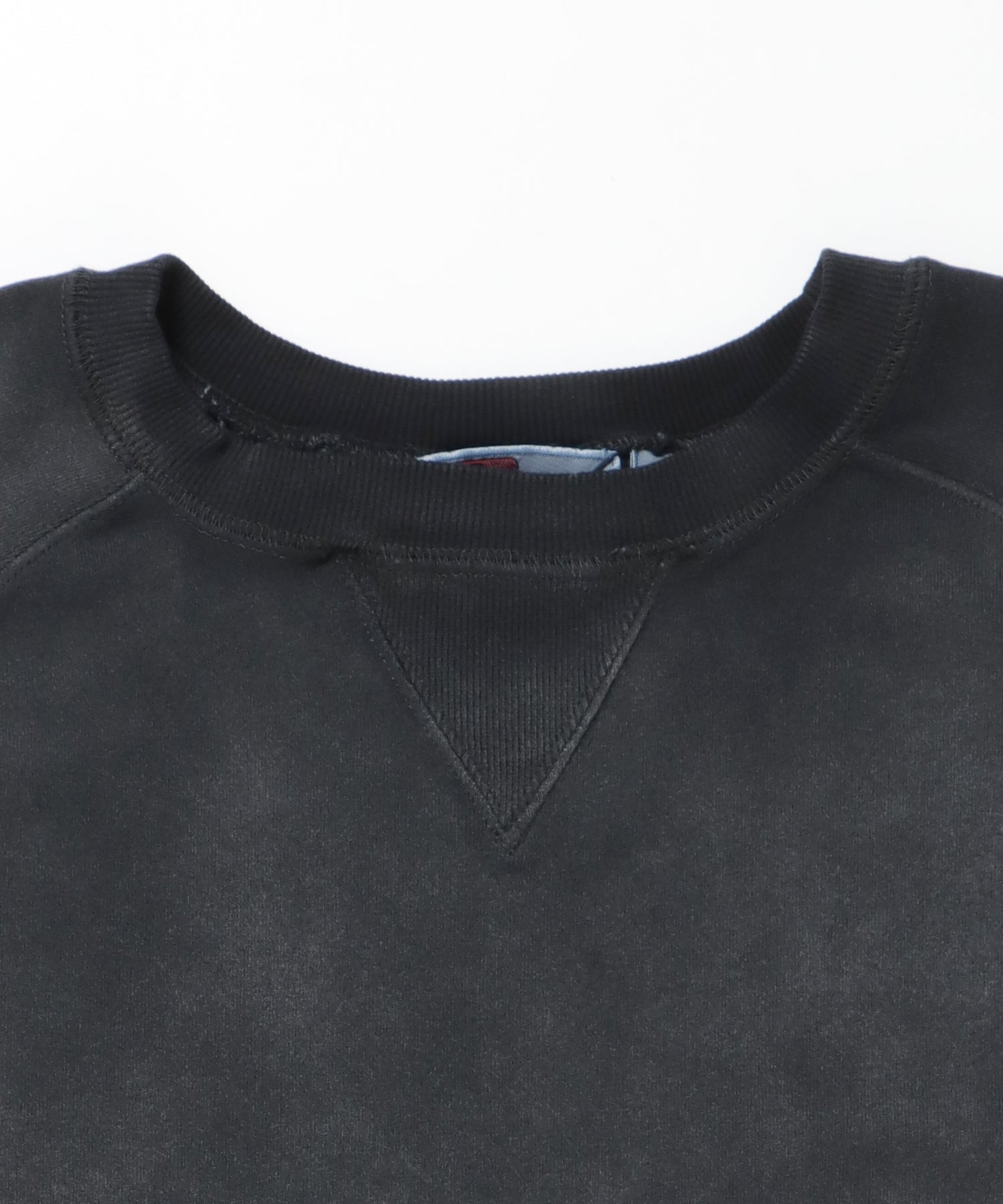 70'S FIT F-SLEEVE CREW / 加工 裏起毛 クルーネック スウェット ラグラン 短丈 裏毛 ブラック