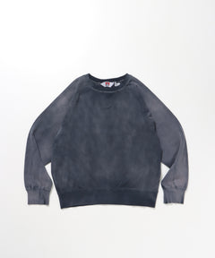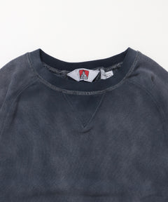 - 70'S FIT F-SLEEVE CREW / 加工 裏起毛 クルーネック スウェット ラグラン 短丈 裏毛 ネイビー