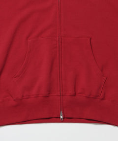 70'S FIT ZIP HOODIE / ジップパーカー 刺繍 フーディ ダブルジップ 裏毛 短丈 レッド