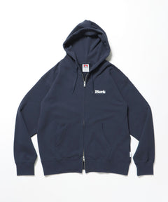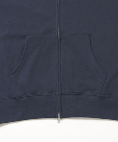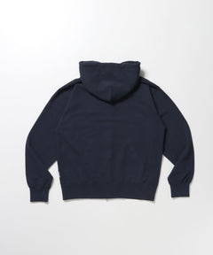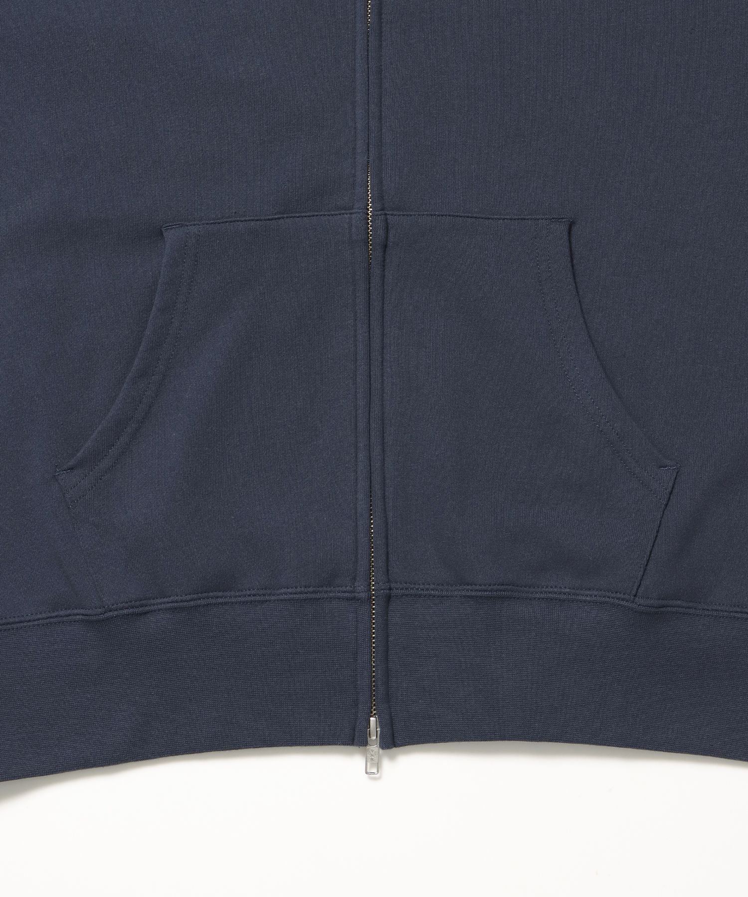 70'S FIT ZIP HOODIE / ジップパーカー 刺繍 フーディ ダブルジップ 裏毛 短丈 ネイビー