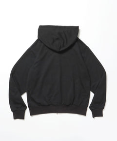 THERMAL LINED ZIP HOODIE / ダブルジップ ヘビーウェイト 短丈 裏毛 ワッフル フーディ ブラック