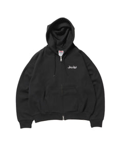 AGGING JERSEY ZIP HOODY / ヘビーウェイト 刺繍 スウェット ジップパーカー 刺繍 【短丈】 ブラック