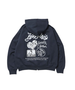 - AGGING JERSEY ZIP HOODY / ヘビーウェイト 刺繍 スウェット ジップパーカー 刺繍 【短丈】 ネイビー