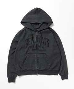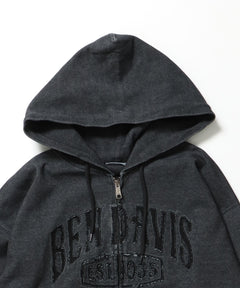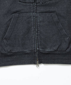 CUTOUT LETTER ZIP HOODY / オーバーサイズ ヘビーウェイト ジップパーカー フーディ ダブルジップ 刺繍 加工 【短丈】 ブラック