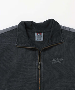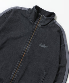 - JERSEY LINE TRACK JACKET / ビッグシルエット フルジップ ヘビーウェイト 加工 刺繍 フーディ【短丈】 ブラック