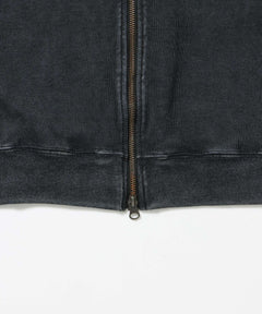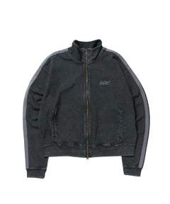 JERSEY LINE TRACK JACKET / ビッグシルエット フルジップ ヘビーウェイト 加工 刺繍 フーディ【短丈】 ブラック
