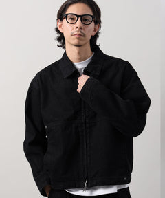袖切り替えデニムJK / ジャケット デニム ジップ リベット ライトアウター 刺繍【セットアップ対応】 ブラック