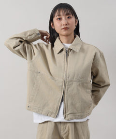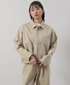 袖切り替えデニムJK / ジャケット デニム ジップ リベット ライトアウター 刺繍【セットアップ対応】 ベージュ
