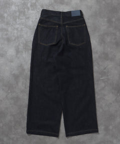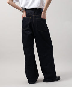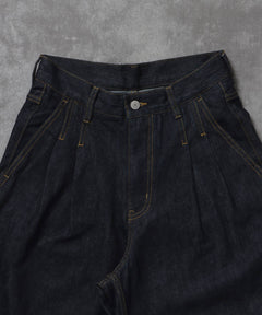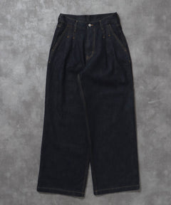 ワイドストレートタックデニムパンツ / デニム パンツ ボトムス ワイドシルエット デニム 【セットアップ対応】 ネイビー