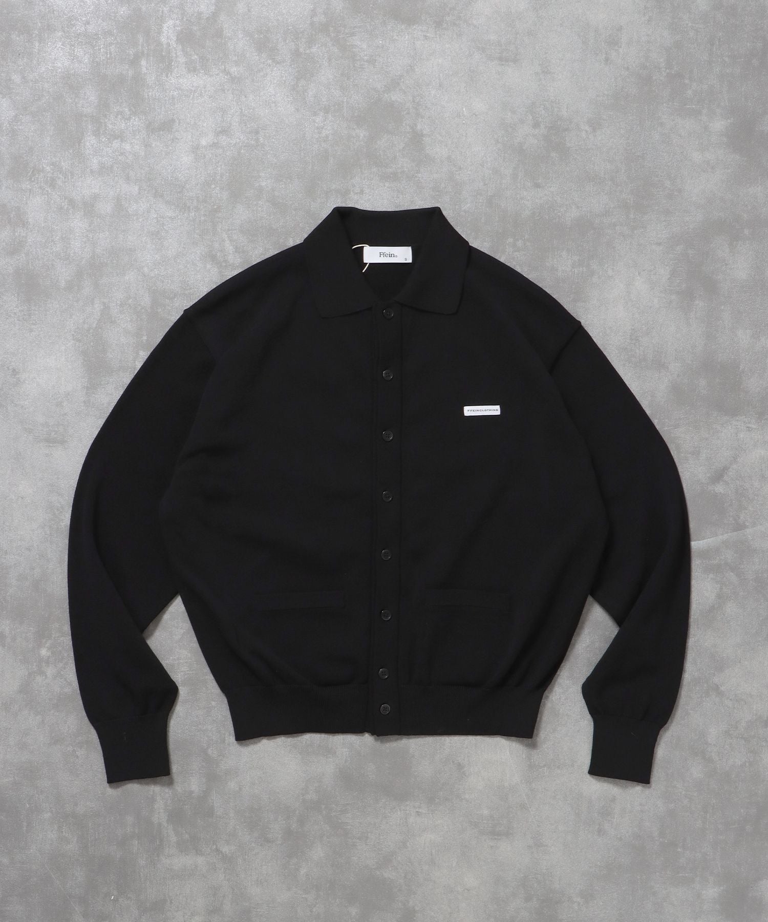 - 襟付きダブルリブニットカーディガン / ニット カーディガン ダブルリブ ボタン ピス ポケット ブラック