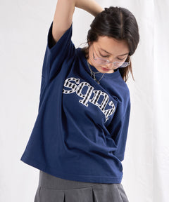sqnz gingham applique tee / Tシャツ 半袖 クルーネック ワッペン チェック ダークネイビー