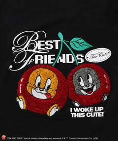 TJ CHERRY FLOCKY S/S TEE / トムとジェリー Tシャツ 半袖 クルーネック プリント 刺繍 オーバーサイズ ブラック