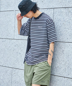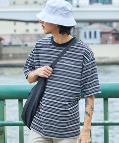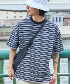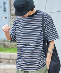 ロゴ刺繍マルチボーダー半袖Tシャツ