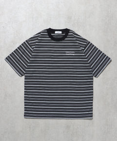 ロゴ刺繍マルチボーダー半袖Tシャツ ブラック