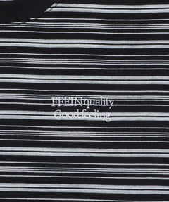 - ロゴ刺繍マルチボーダー半袖Tシャツ ブラック
